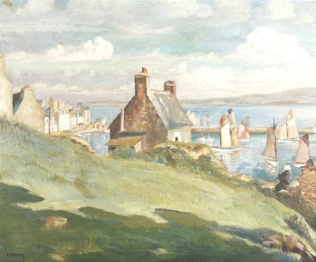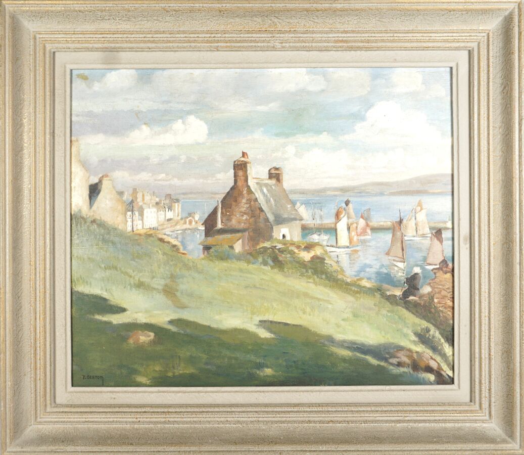 Paul SESTON (1905-1985), "Le port de Douarnenez depuis les Plomarc'h", huile sur toile, signée en bas à gauche, 45 x 54 cm.