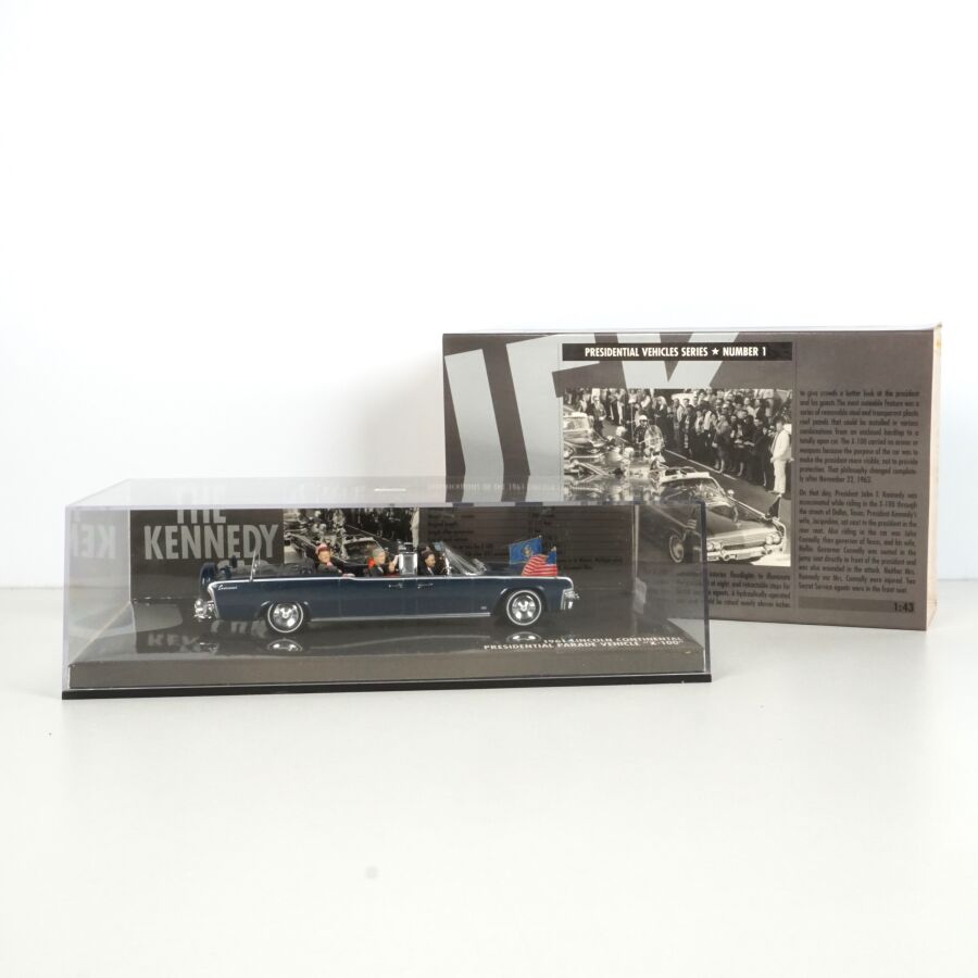 PAUL'S MODEL ART - MINICHAMPS : Lincoln Continental 1961, Presidential Parade Vehicle "X-100", présentée en boîte d'origine, 15 x 4.5 cm.