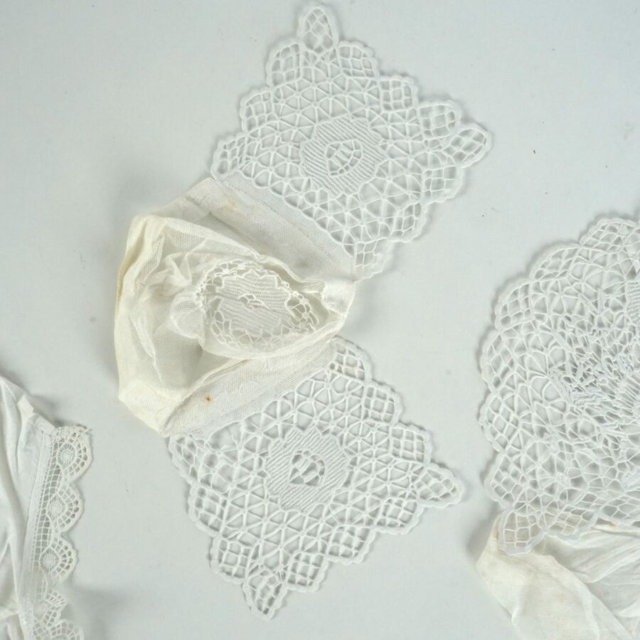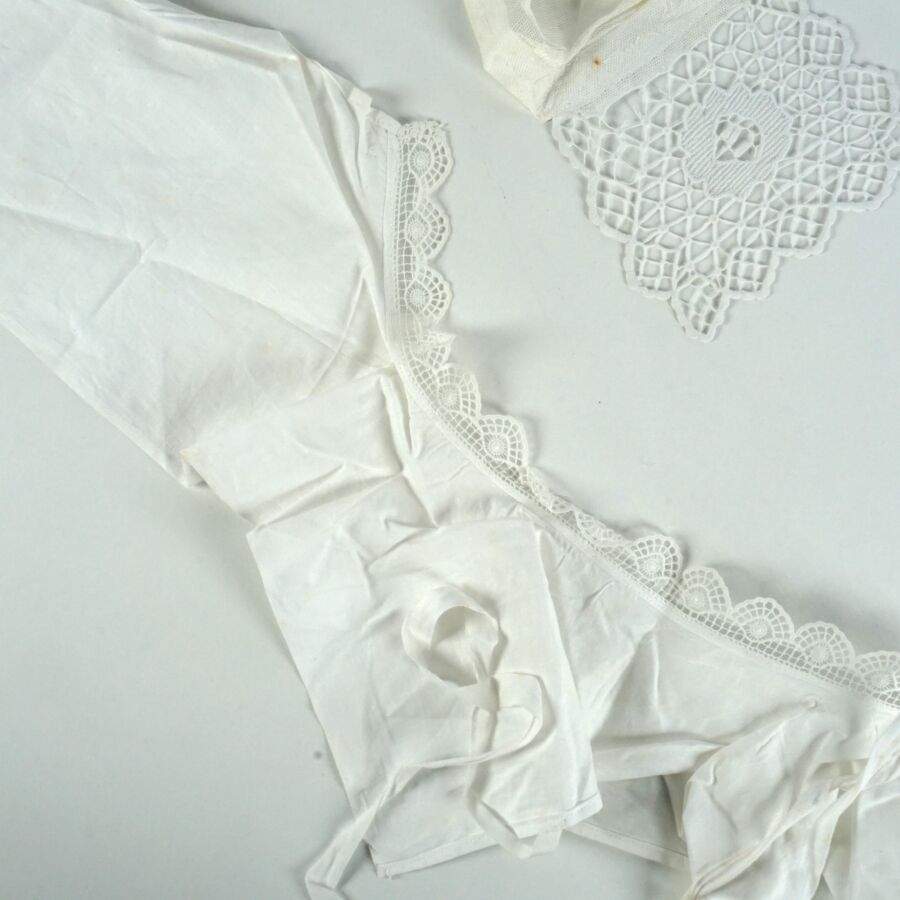 - Deux coiffes en dentelle blanche et un col