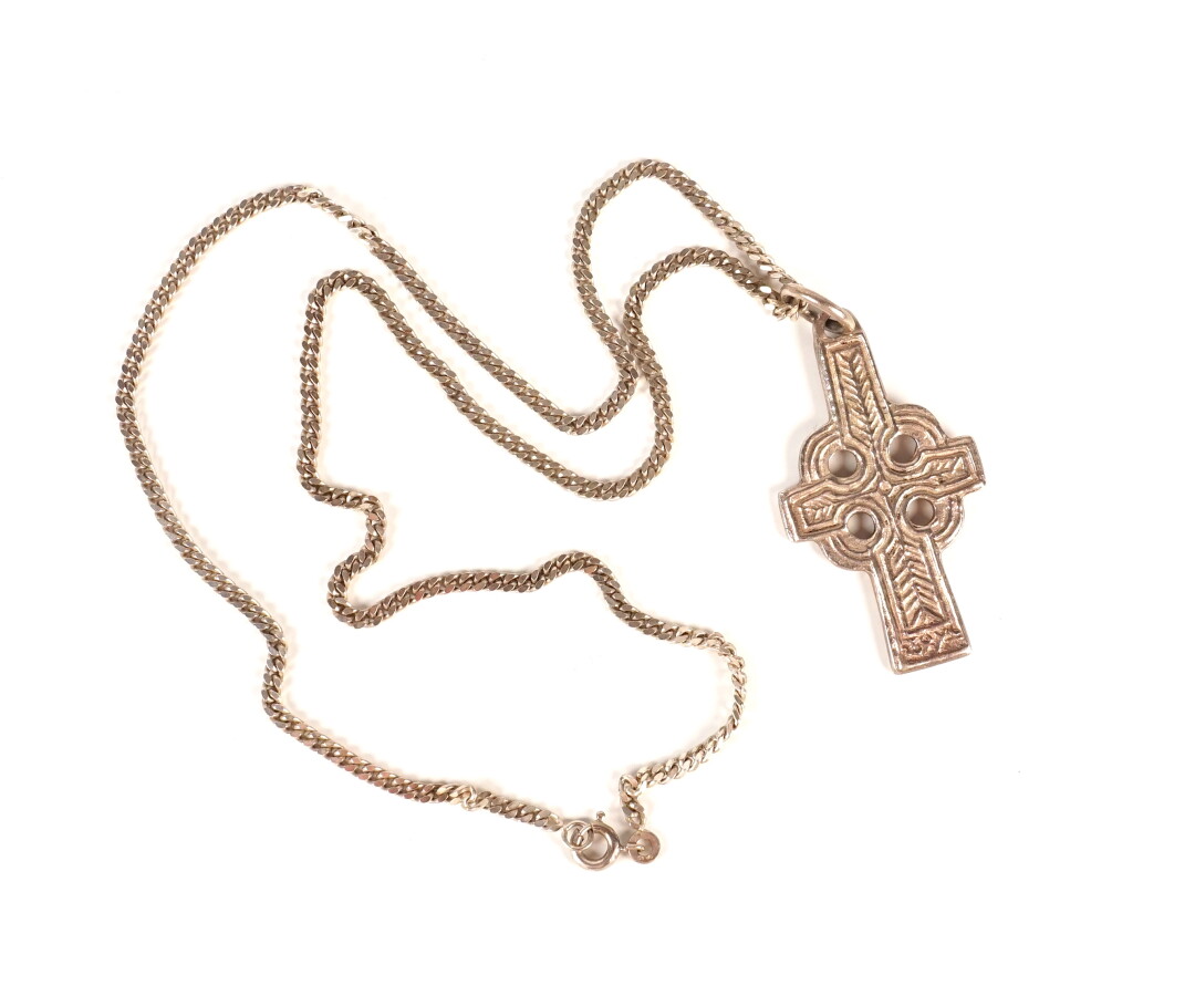 Pendentif "Croix celtique" en argent (800/oo) à décor de frises géométriques, H. 5 cm