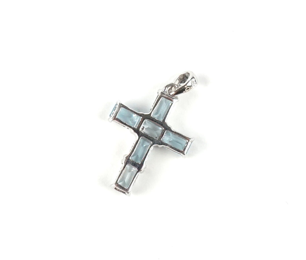 Pendentif "Croix" en argent (925/oo) sertie de 6 topazes taille rectangulaire, H. 3 cm. Poids brut : 3.3 cm.