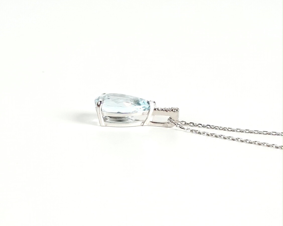Pendentif "Goutte" en or blanc 18K (750/oo) orné d'une aigue-marine taille poire calibrant 2.35 cts, la bélière sertie de 3 diamants blancs taille moderne pour 0.02 ct, H. 1.6 cm.