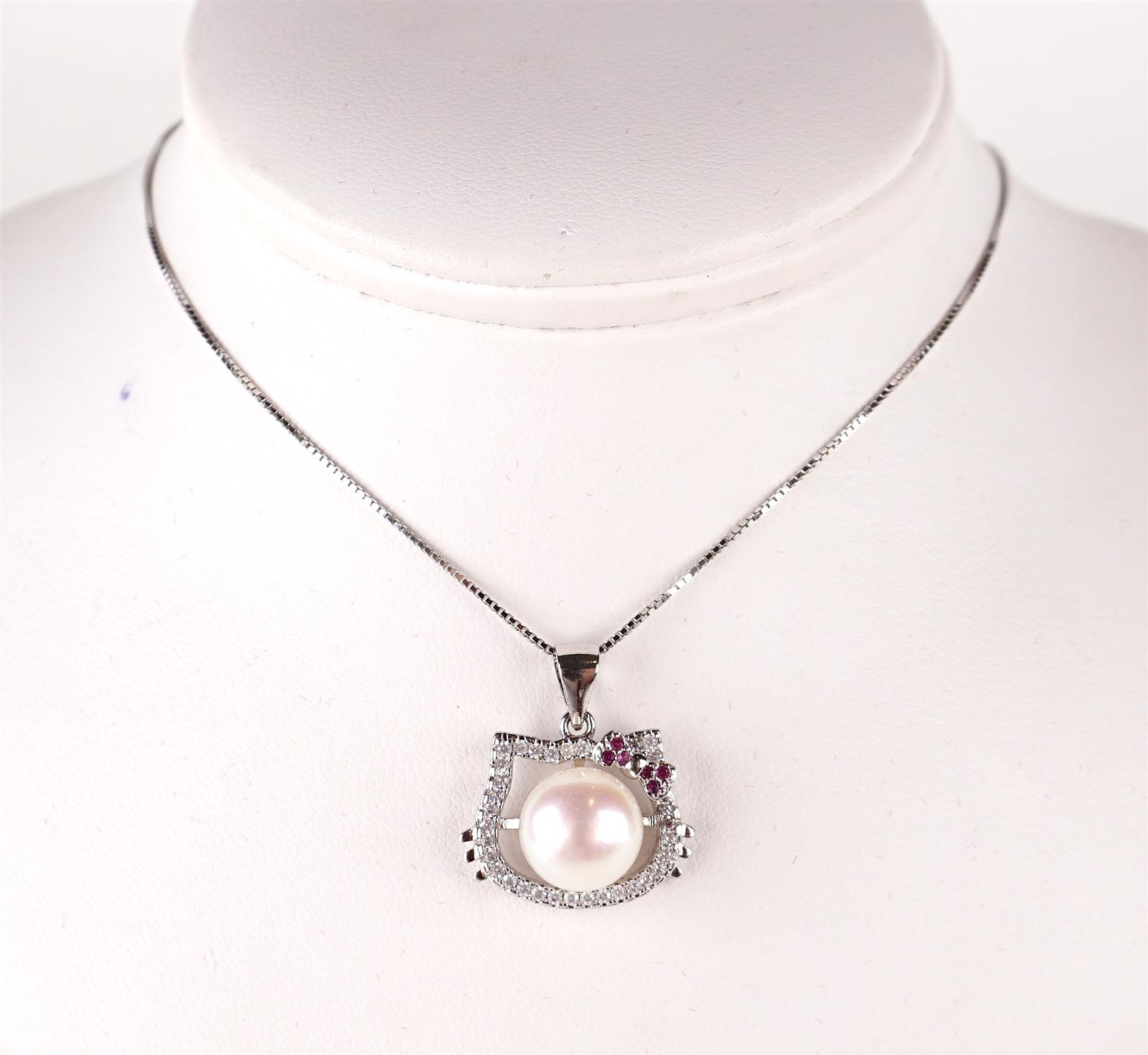 Pendentif "Hello Kitty" et sa chaine en argent, orné d'une perle, H. totale : 2 cm.