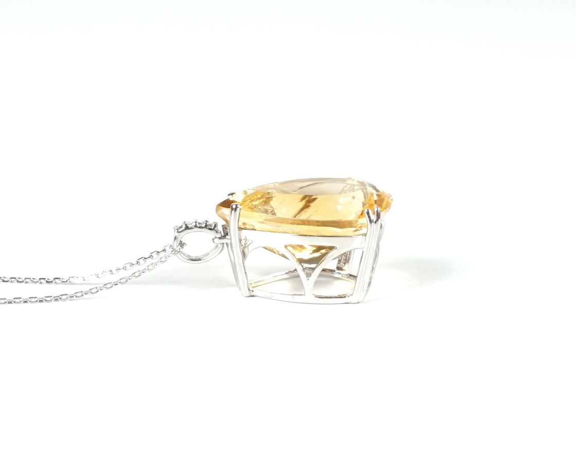Pendentif "Poire" en or blanc 18K (750/oo), serti d'une importante citrine taille poire pesant 13.95 carats, la bélière sertie de 4 diamants blancs taille moderne pour 0.03 carat, H. cm.