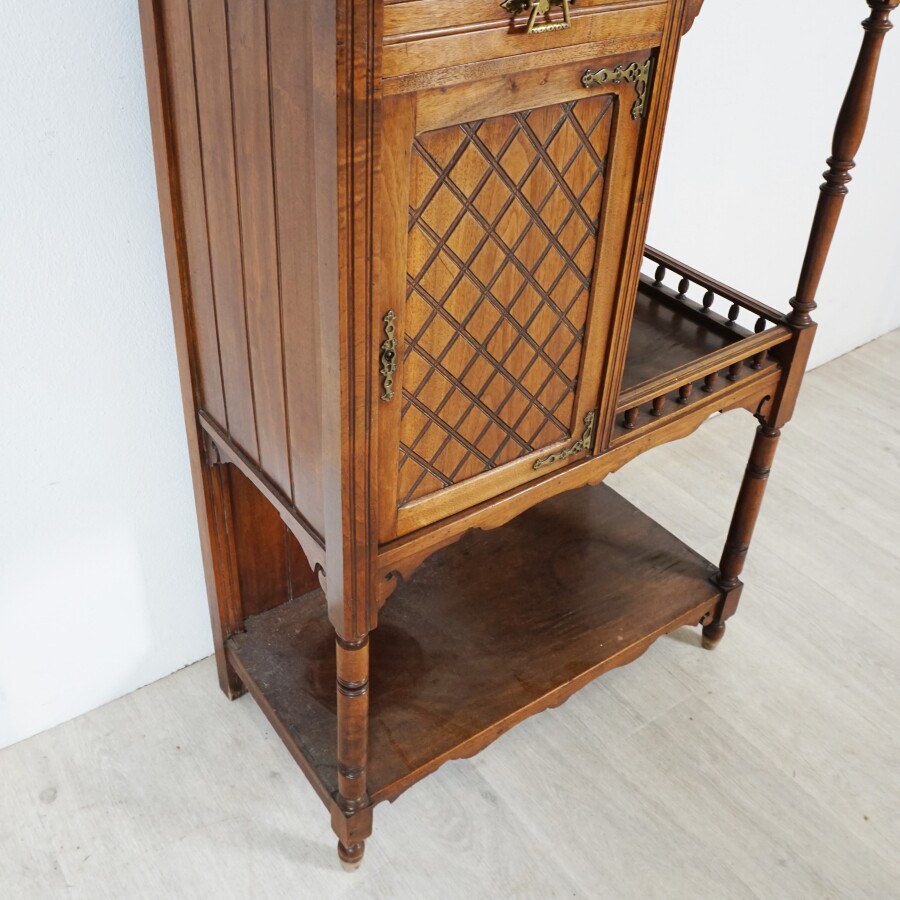 Petit cabinet en noyer, ouvrant à plusieurs vantaux, et agrémenté de tablettes, circa 1900, H. 159 x 70 x 35 cm (usures et accidents).