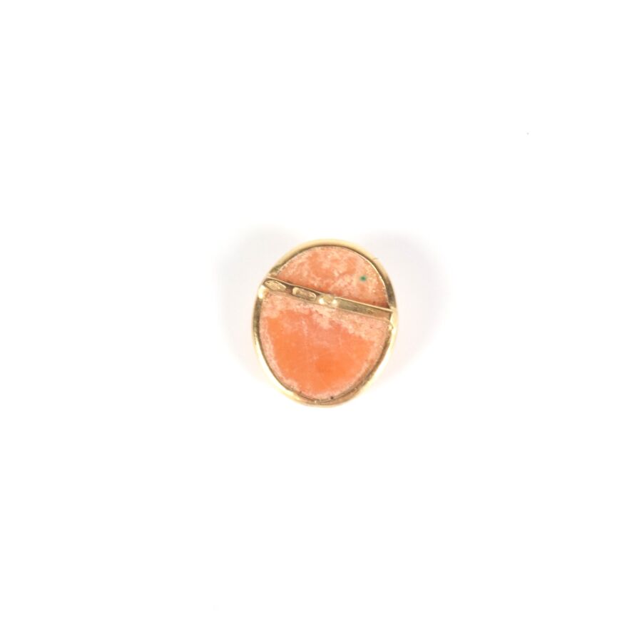 Petit camée, monture en or jaune 18K (750/oo), figurant un profil de femme, Dim. 1.4 x 1.2 cm. Poids brut : 0.9 g environ (usures).