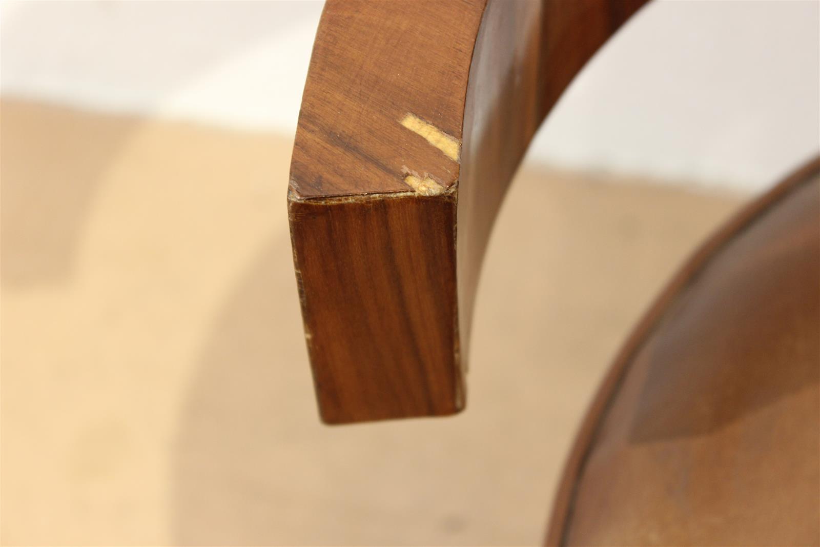 Petit fauteuil style Art-Déco, assise en cuir marron, H. 76.5 cm (manques au placage)