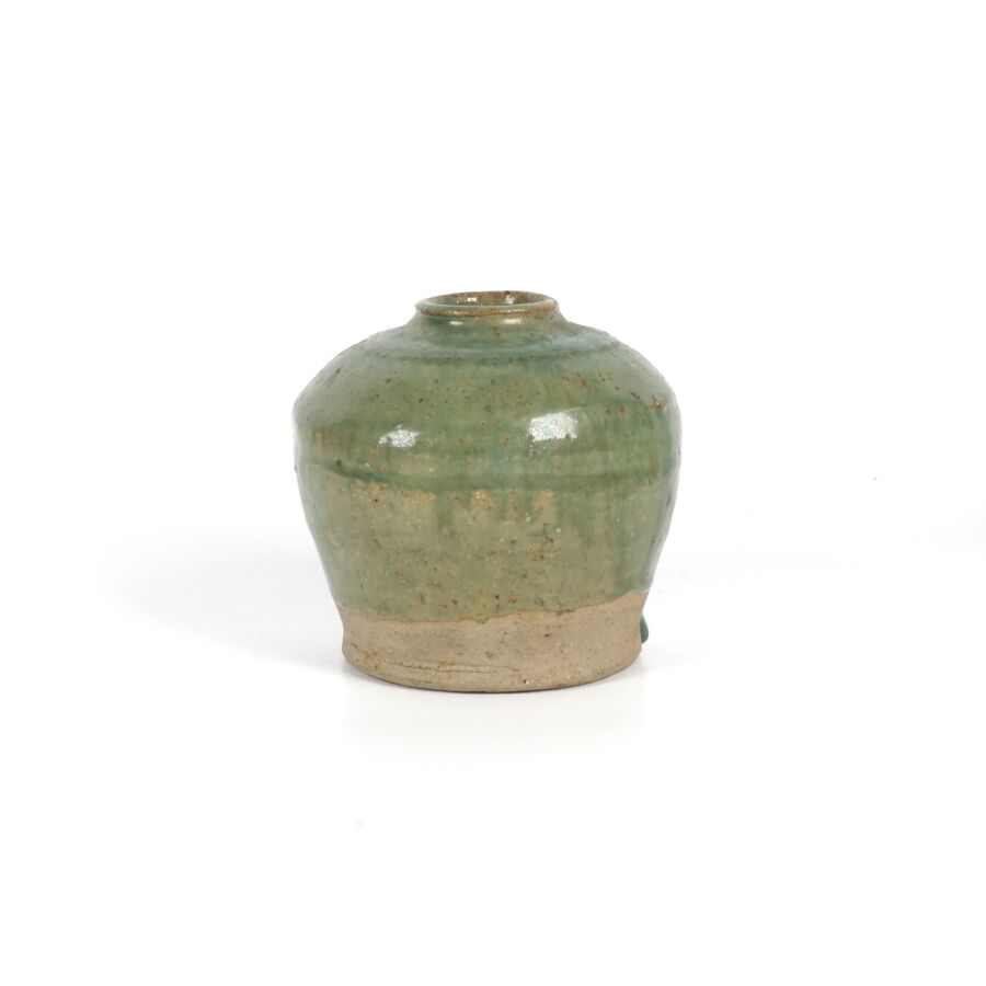 Petit pot globulaire en grès vert, Chine du Sud, fin du 19ème siècle, H. 11.5 cm.