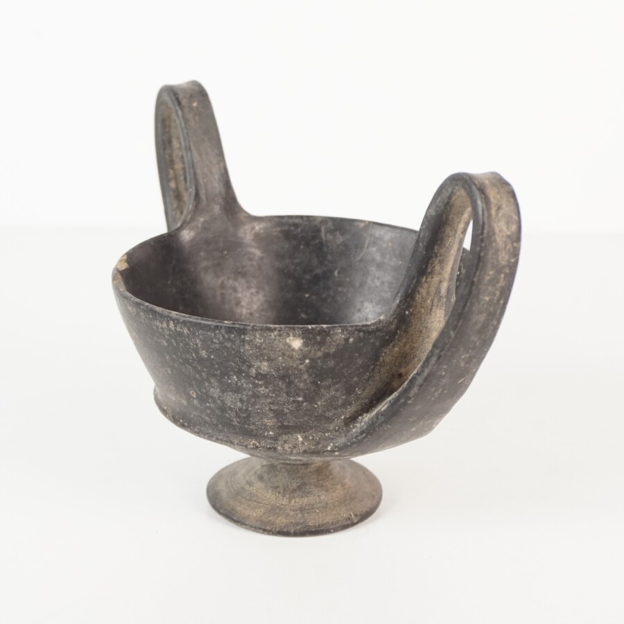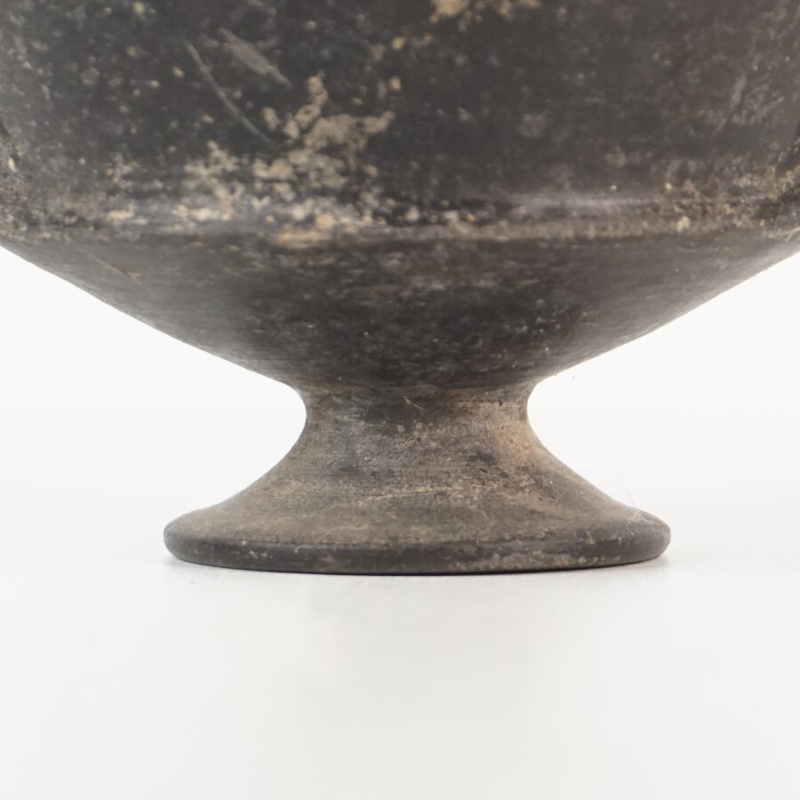 Petit vase à anses, terre cuite patinée noire, dans le goût de l'Antique, D. 11 cm. H.11.5 cm (usures).