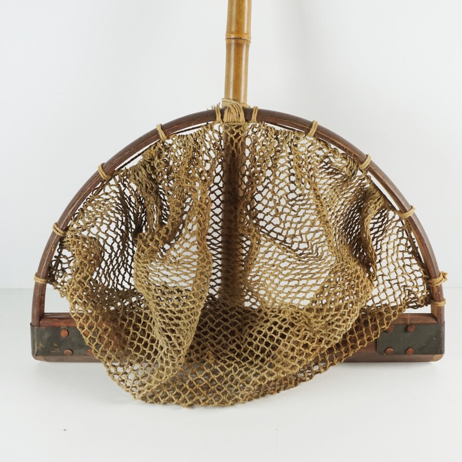Petite épuisette, filet et bois, L. 58 cm (usures, manque une partie du manche).