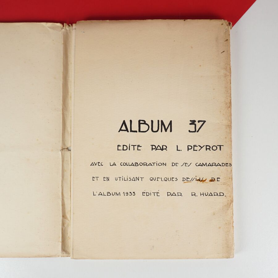 PEYROT (L.). Album 37 édité par L. Peyrot avec la collaboration de ses camarades et en utilisant quelques dessins de l'album 1933 édité par R. Huard. In-4 en ff., sous couverture à rabat illustrée et imprimée (usée). 32 planches de caricatures.