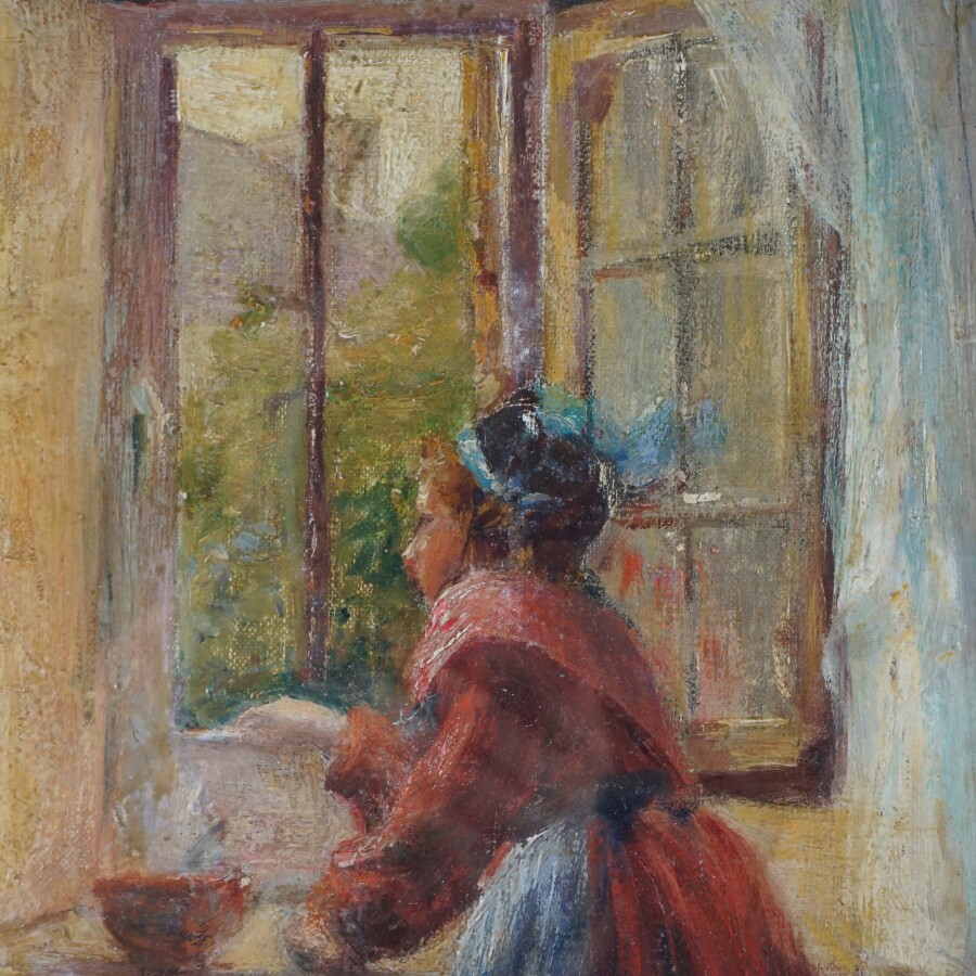 PEYTEL (XIX-XXe), "Femme dans son intérieur", huile sur toile, signée, 41 x 32 cm.
