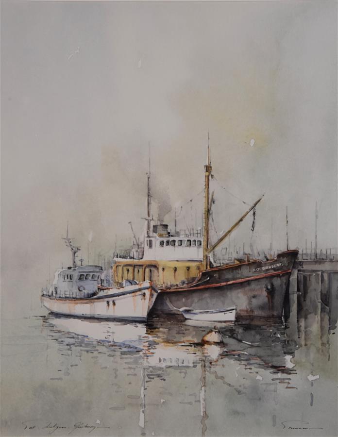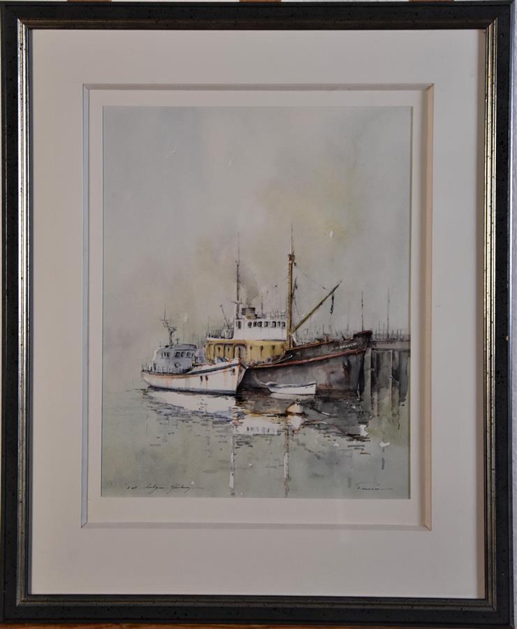Philippe PERENNOUD (XXe), "Quiberon, Port-Haliguen", aquarelle sur papier signée en bas à droite et titrée à gauche, 33 x 25 cm