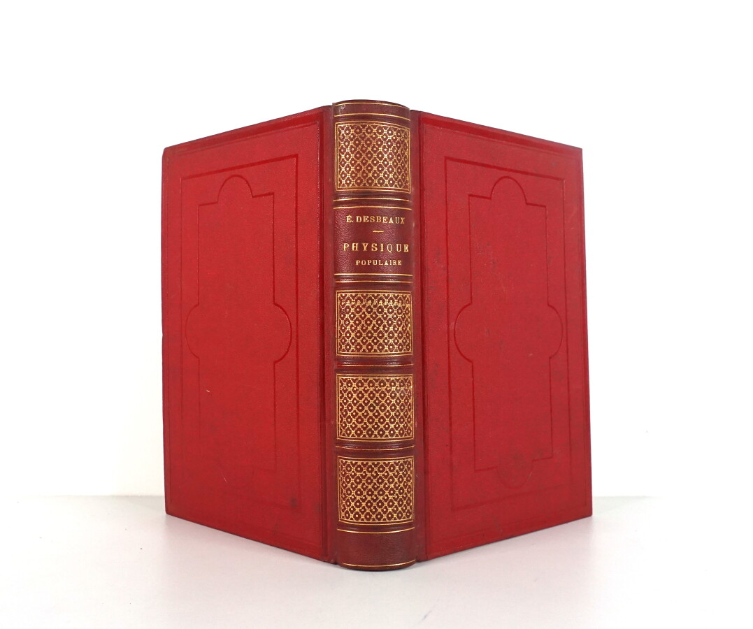 [PHYSIQUE] - DESBEAUX (Émile) - Physique populaire - Paris ; Marpon et Flammarion, 1891 - 1 volume In-4° - 508 figures, certaines à pleine page et 4 aquarelles hors texte en chromolithographie - reliure de l'époque demi-chagrin rouge - Dos à nerfs orné et titré or - Tranches dorées - Bon exemplaire.