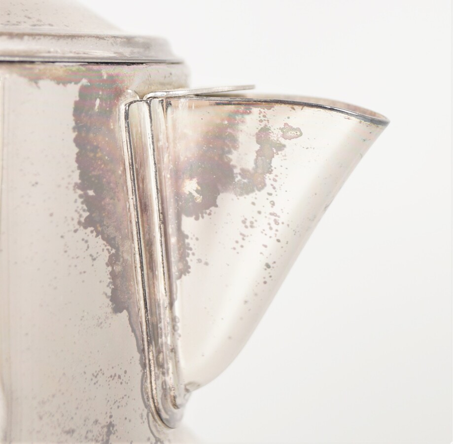 Pichet à rafraîchir en cristal taillé et monture en métal chromé, marqué DBGM sous le tube intérieur, H. 26 cm (usures au métal, taches).
