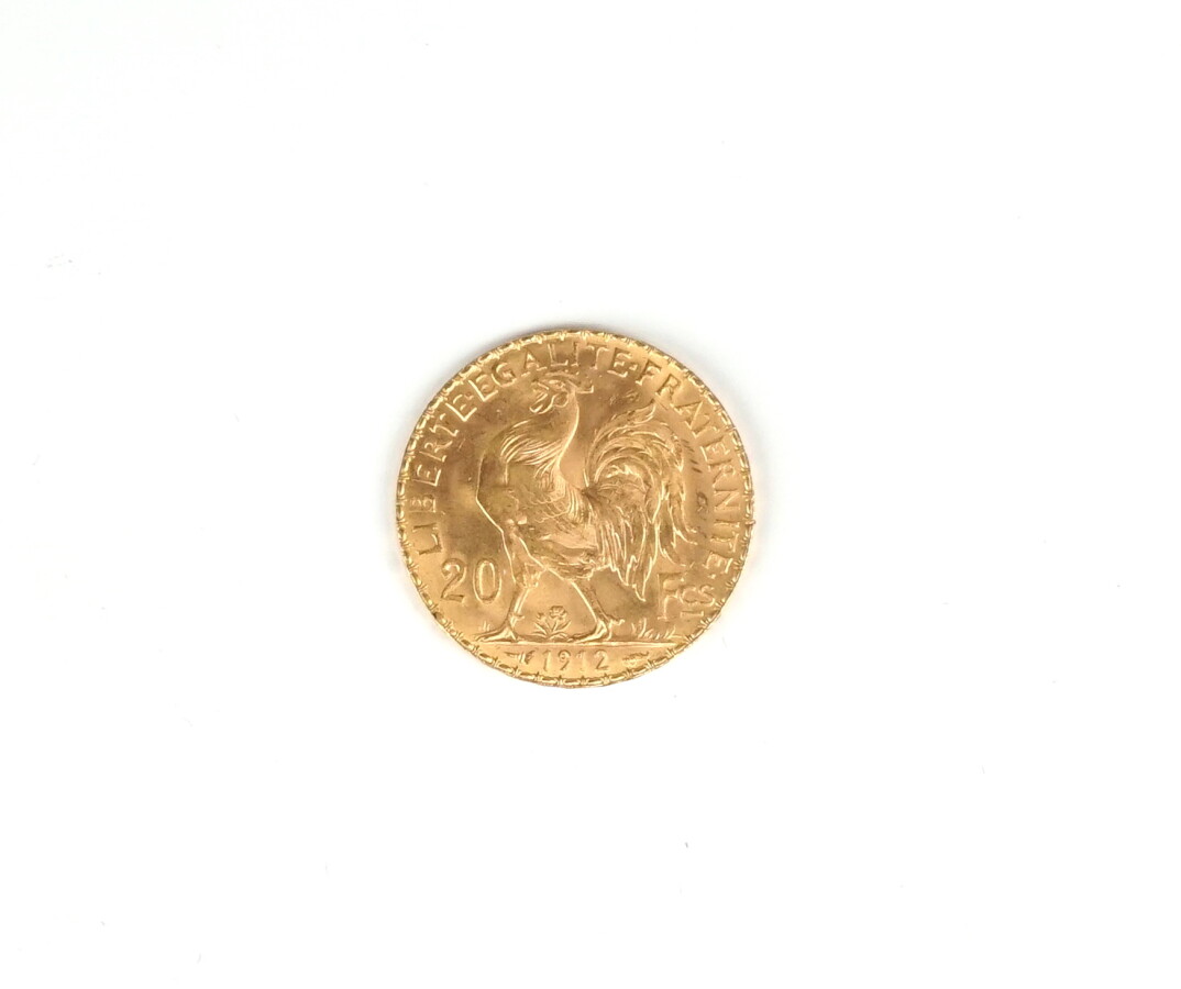 Pièce 20 Francs or République française "Marianne Coq" 1912. Poids brut : 6.5 g environ.