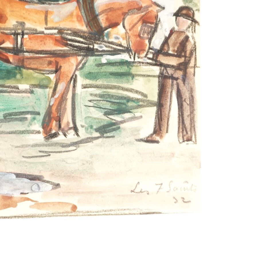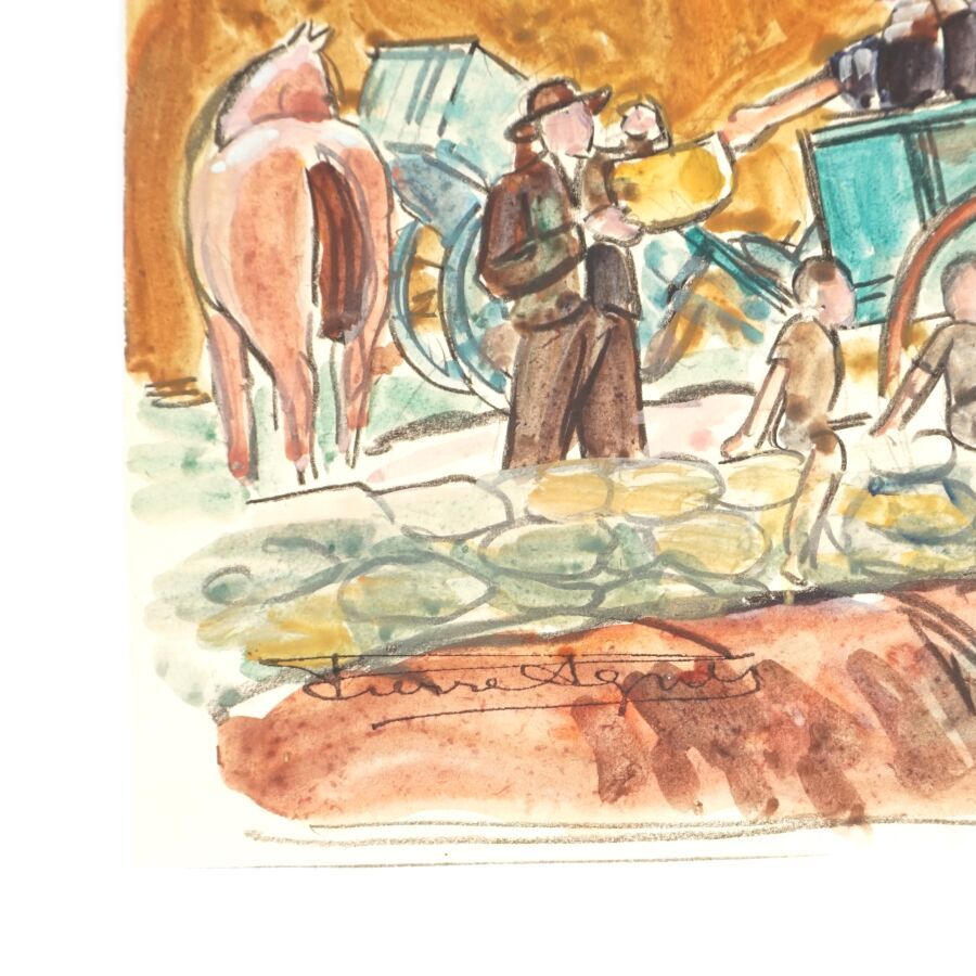 Pierre AGNES (1898-1964), "Journée des sept saints fondateurs" 1932, aquarelle et dessin signé du cachet de l'artiste en bas, situé et daté en haut, Dim. 15 x 25 cm (à vue).