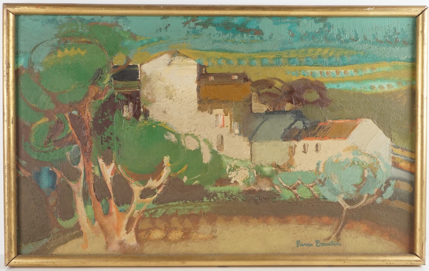 Pierre BAUDIN (1925), "Corse, les pins parasols", huile sur toile signée en bas à droite, titrée et située au dos, 33 x 55 cm.