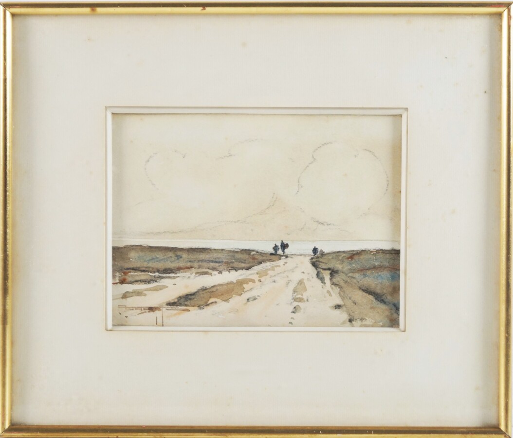Pierre BRETTE (1905-1961), "Le chemin vers la mer", aquarelle sur papier, signée en bas à gauche 13 x 17 cm (à vue) (légères rousseurs).