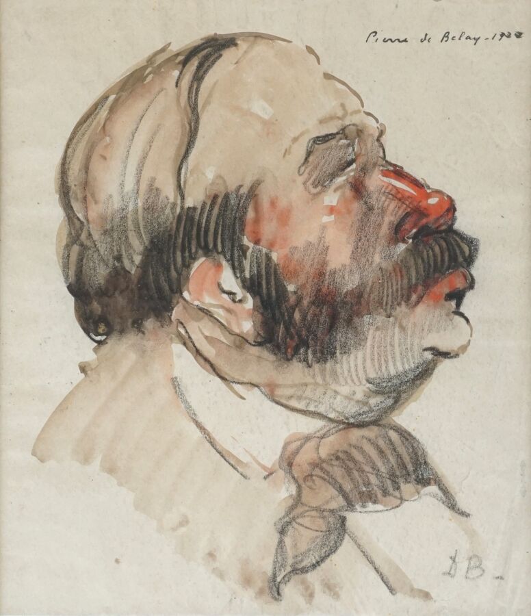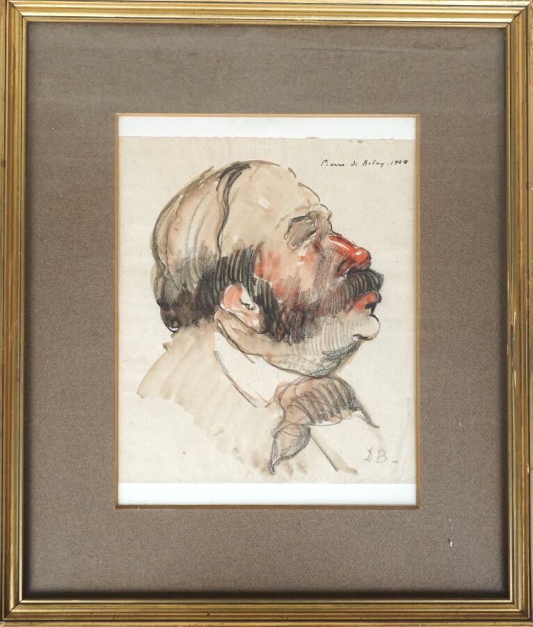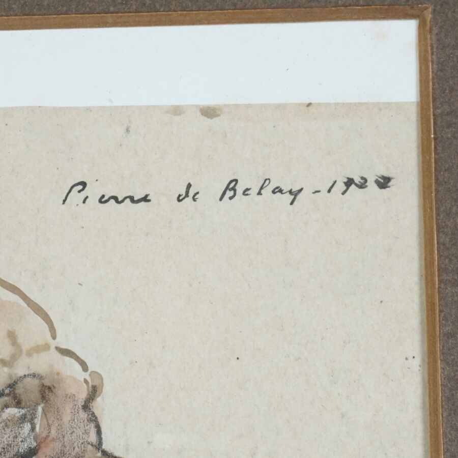 Pierre DE BELAY (1890-1947), "Portrait d'homme" 1927 (?), dessin et aquarelle sur papier, signée et datée en haut à droite, 20.5 x 17.5 cm (à vue) (petites pliures).