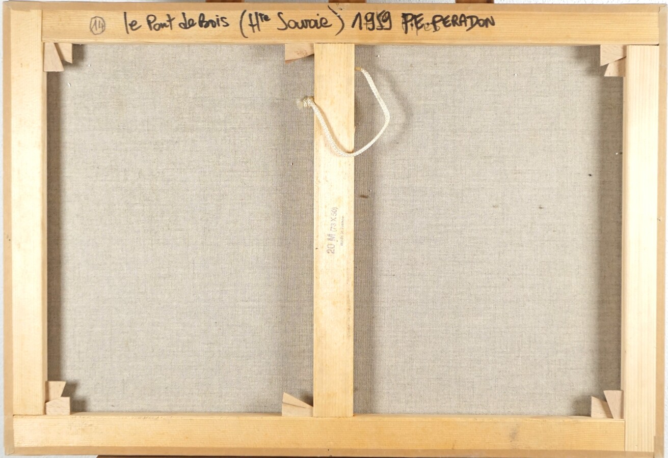 Pierre-Edmond PÉRADON (1893-1981), "Le pont de bois en Haute Savoie", huile sur carton marouflée toile signée en bas à gauche, 50 x 73 cm (petites projections).