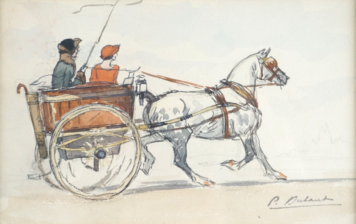 Pierre Olivier DUBAUT (1886-1968), "Calèche", aquarelle sur papier, signée en bas à droite, 12 x 18.5 cm (à vue).