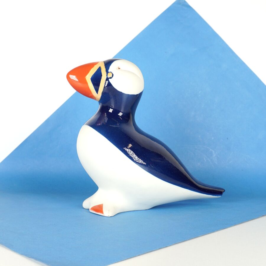 Pierrette SOULET (XXe), " Macareux", sujet en grès émaillé, signé dessous, H. 22 cm.