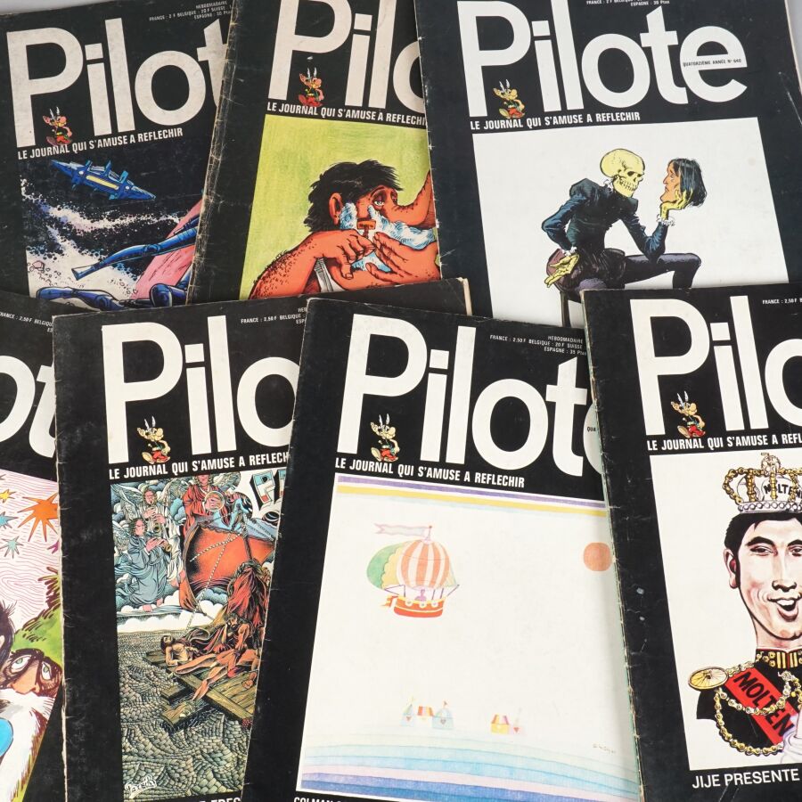 PILOTE, éd. SCOP : Lot de 7 magazines comprenant les numéros 632, 635, 640, 677, 669, 670 et 676. État moyen.