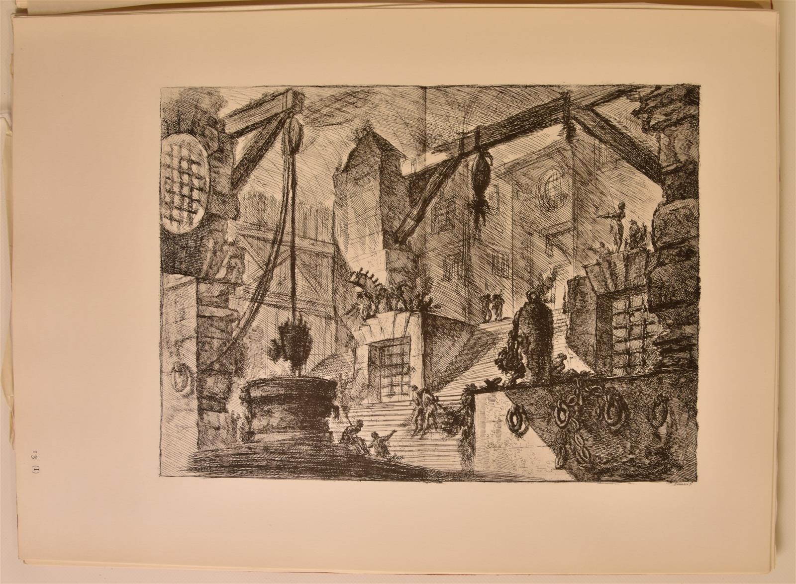 PIRANESE (Jean-Baptiste) [PIRANESI (Giovanni-Battista)] - Les prisons imaginaires. Présentation par Max-Pol Fouchet - [Paris] ; Le Club du Livre français, 1970 - 1 volume In-Folio en feuillets sous couverture orangée rempliée titrée au dos (légèrement insolé et 1 petit accroc), sous emboîtage à l'identique - 18 planches hors-texte en noir d'après Piranesi, sous serpentes (certaines froissées) - Bon exemplaire.