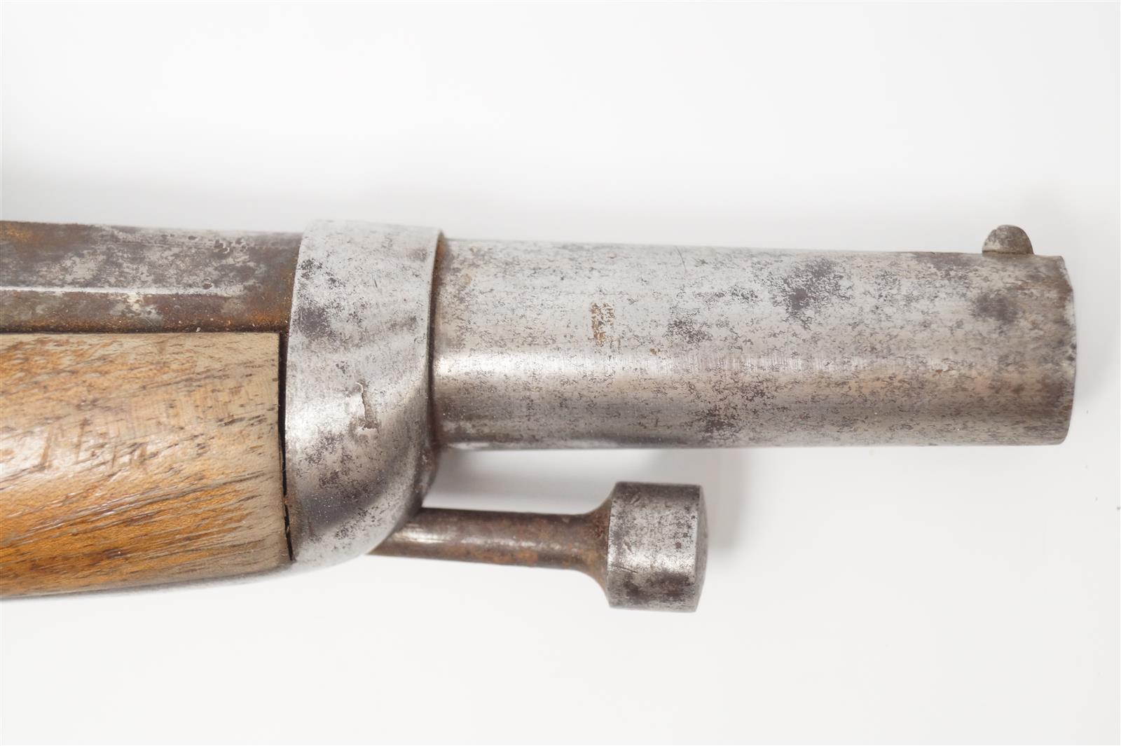 PISTOLET D'OFFICIER DE GENDARMERIE MODELE 1838, platine à percussion de la " Manufacture Royale de Châttelerault ", canon rond à pans au tonnerre, baguette en fer, monture en noyer, calotte à charnière, longueur 25,2 cm, ABE/BE