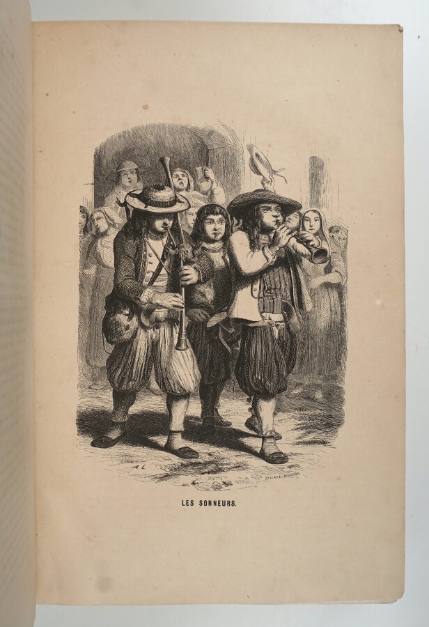 PITRE-CHEVALIER - La Bretagne ancienne et moderne - Paris ; W. Coquebert, sans date [vers 1844] - 1 volume In-4° - Des rousseurs éparses, quelques feuillets brunis - Frontispice doré, cartes et planches d'armoiries en couleurs, planches de médailles en noir, illustrations sur acier in et hors texte en noir par MM. A. Leleux, O. Penguilly, T. Johannot - Reliure contemporaine demi-vélin ivoire à coins à la Bradel - Dos lisse titré et daté or - Ex-libris : Le Blohic (2).