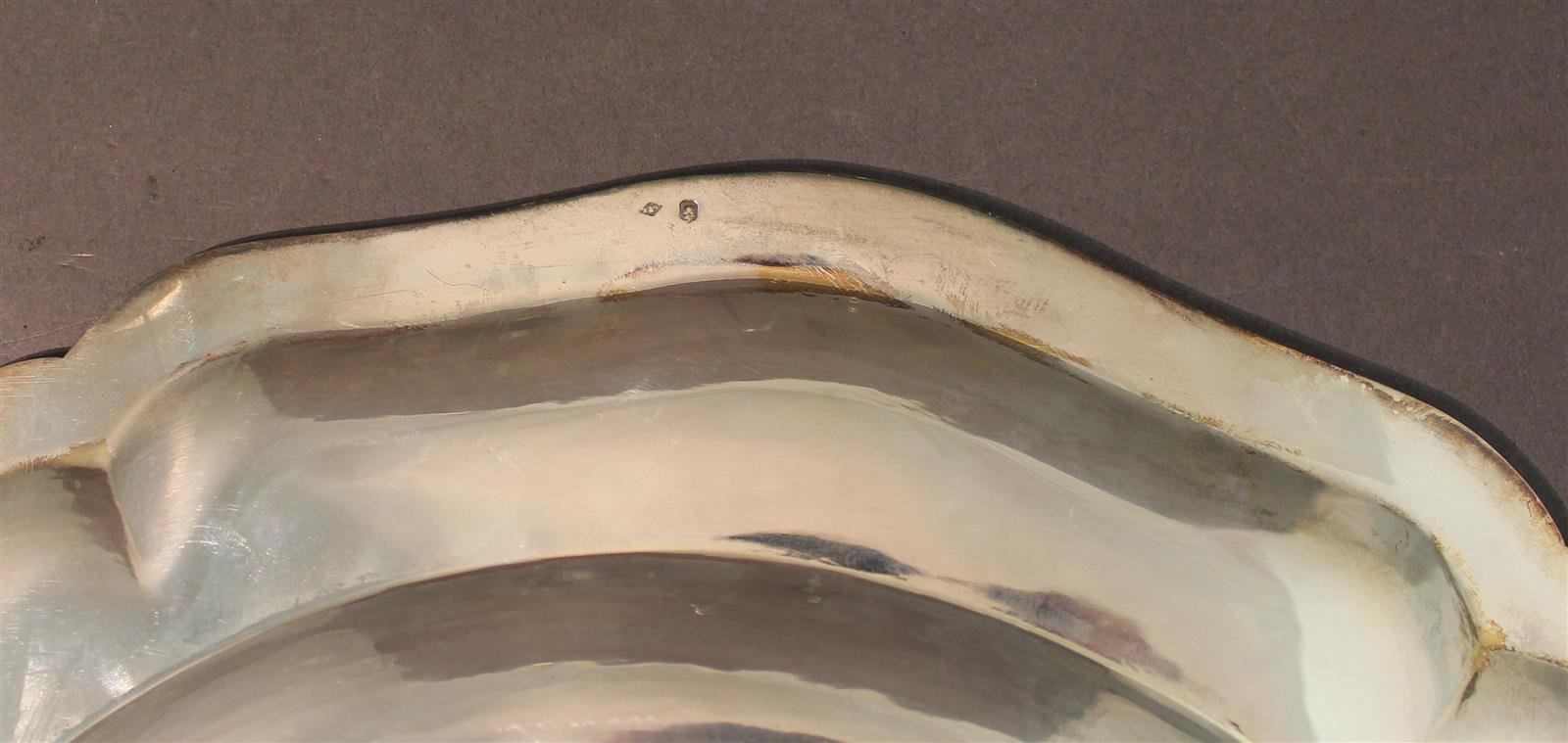 Plat de forme ronde, bordures en accolades, modèle filet, en argent massif, poinçon Minerve, D. 33 cm. Poids brut : 780 g environ