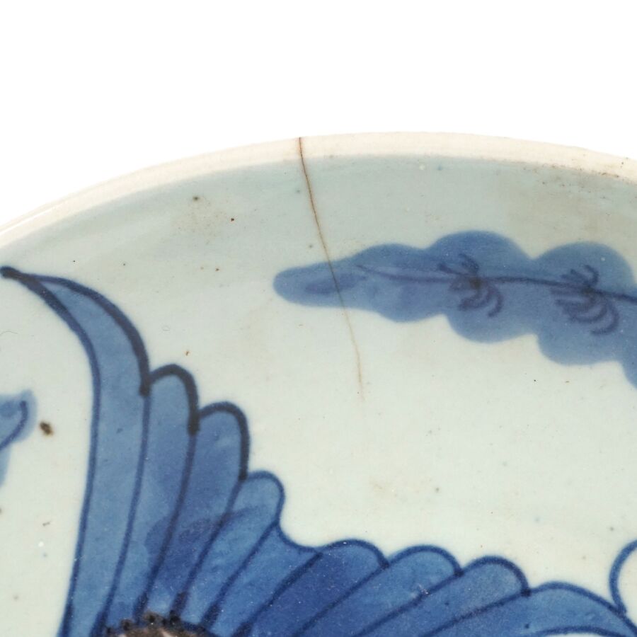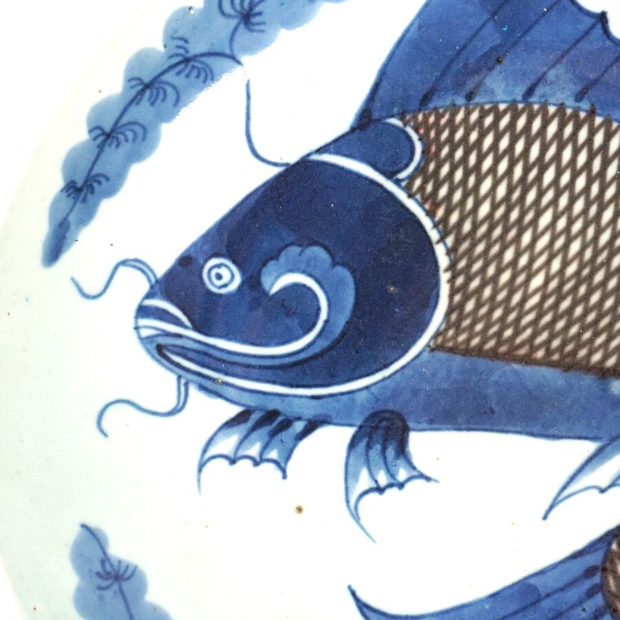 Plat en porcelaine émaillée à décor en bleu et brun d'une carpe, Chine du Sud, fin du 19ème siècle, Diam. 27.5 cm (fêle).