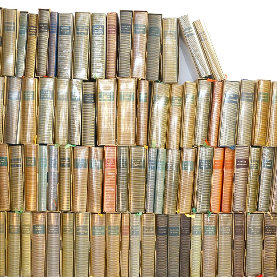 Pléiade (La). Important ensemble de 167 volumes dont 3 albums (Céline, Sand et Rousseau) : AGRIPPA D'AUBIGNE, ALAIN, APOLLINAIRE, BALZAC, BARBEY D'AUREVILLY, BAUDELAIRE, BEAUMARCHAIS, BOILEAU, CAMUS, CASANOVA, CELINE, CHATEAUBRIAND, CHENIER, CLAUDEL, CORNEILLE, COURIER, CROS, CORBIERE, DE FOE, DESCARTES, DICKENS, DIDEROT, DOSTOIEVSKI, ELUARD, FIELDING, FLAUBERT, GIDE, GOETHE, GOGOL, HERODOTE, THUCYDIDE, HOLDERLIN, HOMERE, HUGO, LA BRUYERE, LA FONTAINE, LA ROCHEFOUCAULD, LAMARTINE, LARBAUD, LAS CASES, LAUTREAMONT, G NOUVEAU, LESKOV, SALTYKOV, CHTCHEDRINE, MACHIAVEL, MALHERBE, MALLARME, MARIVAUX, MARX, MERIMEE, MICHELET, MOLIERE, MONLUC, MONTAIGNE, MONTESQUIEU, MONTHERLANT, MUSSET, NERVAL, PASCAL, PEGUY, PLATON, PLUTARQUE, POE, POLYBE, PROUST, RABELAIS, RACINE, RENARD, RETZ, RIMBAUD, RONSARD, ROUSSEAU, SAINTE-BEUVE, SAINT-EXUPERY, SAINT-SIMON, SAND, SAND , SEVIGNE, SHAKESPEARE, STENDHAL, SWIFT, TALLEMANT DES REAUX, TCHEKHOV, TOLSTOI, VALERY, VERLAINE, VIGNY, VOLTAIRE, Romans grecs et latins, Les Stoïciens, Historiens romains, Tite-Live, Salluste, Tragiques grecs Eschyle, Sophocle, Tragiques grecs Euripide, Romantiques allemands, Conteurs français du XVIe siècle, Historiens et chroniqueurs du Moyen-Âge, Poètes du XVIe siècle, Poètes et romanciers du Moyen-Âge, Romanciers du XVIIIe siècle, Romanciers du XVIIIe siècle. (détails et états sur demande.)