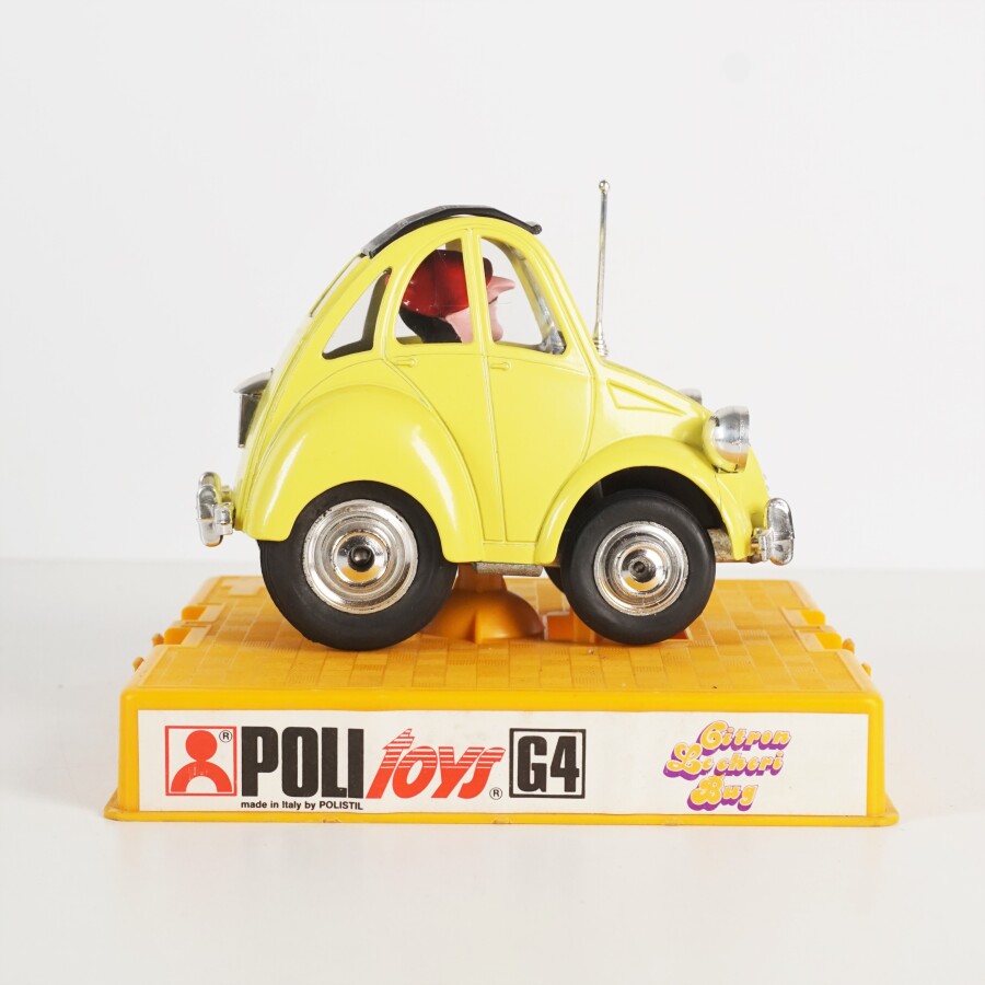 POLISTIL : "Citron Le chéri bug" réf. G4, voiture jaune, toit ouvrant, sur son socle, dans sa boîte d'origine (quelques usures).