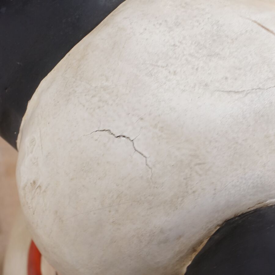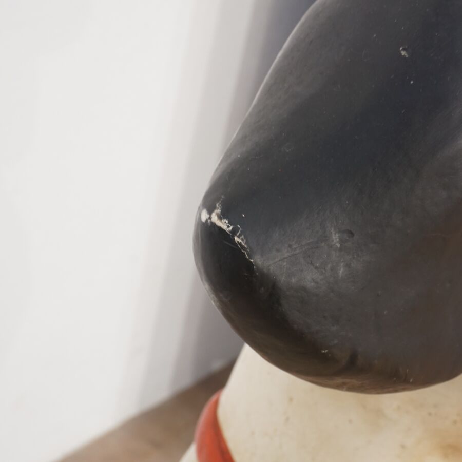 Pongo, important sujet en plâtre polychrome et bois, figurant le célèbre dalmatien Disney, travail moderne, H. 100 cm (accident au pied avant droit, usures, écaillures).