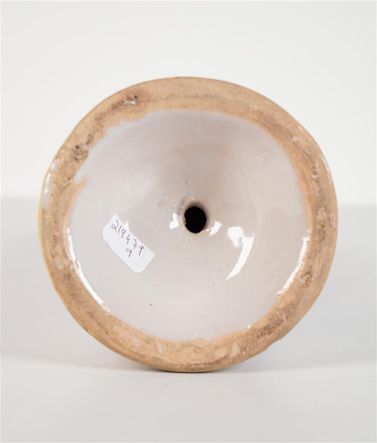 PORQUIER QUIMPER : Vierge d'accouchée en faïence émaillée polychrome titrée "Ste Vierge", taille 3, sans marque, circa 1880, H. 27.5 cm.