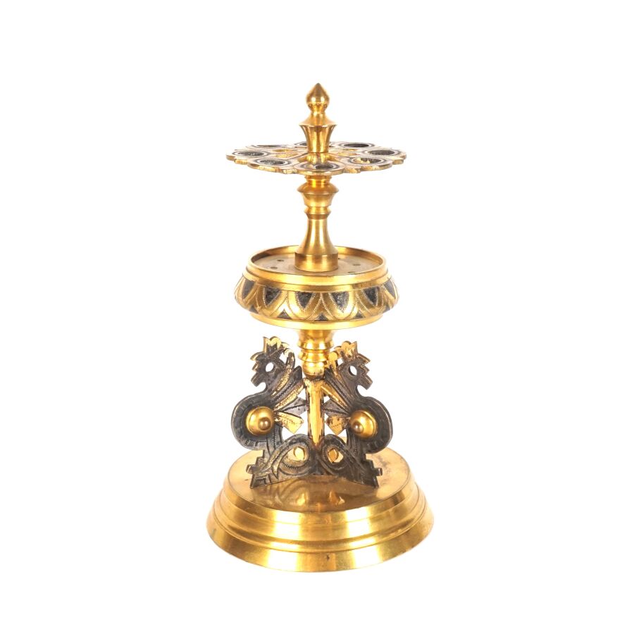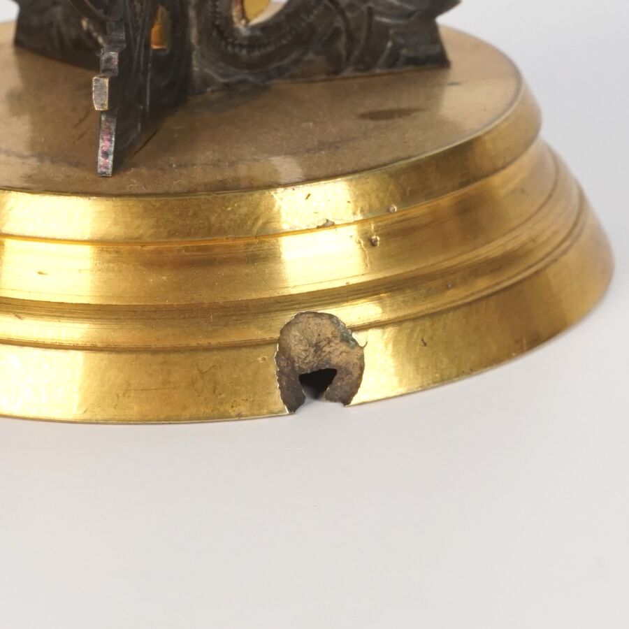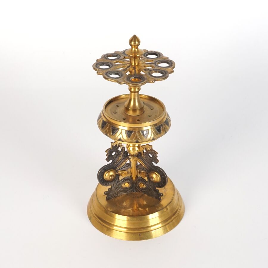 Porte cure-dents en métal doré et à patine brune, H. 14 cm (petit éclat).