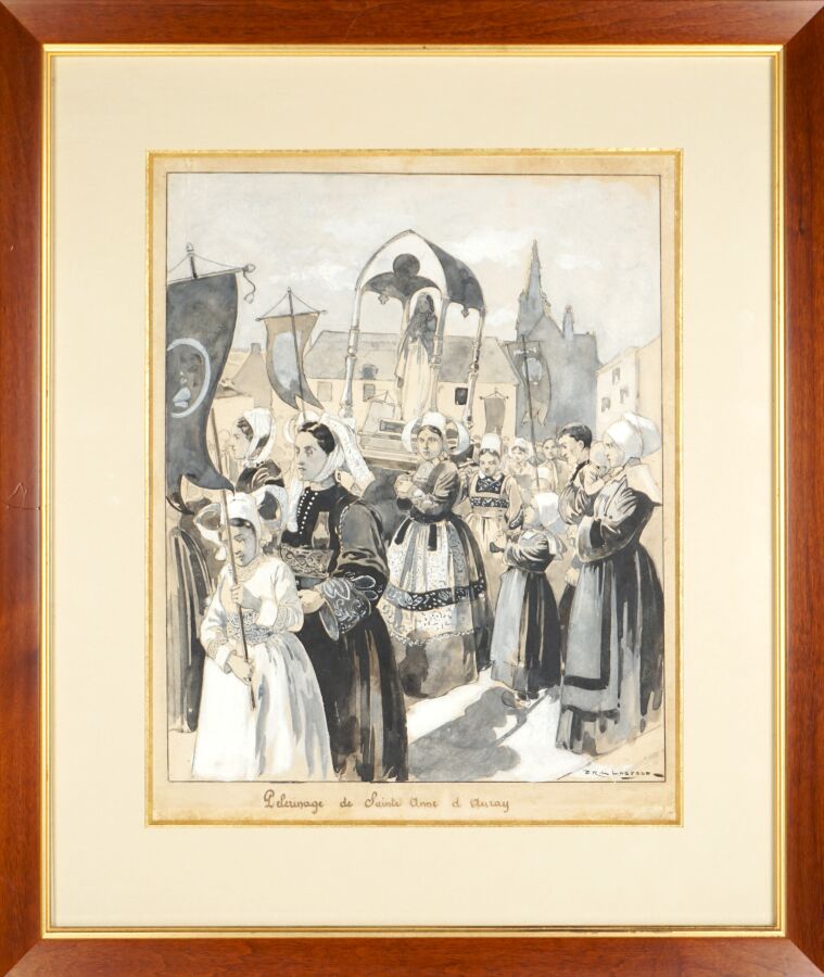 PR de LARESSE (XXe), "Pèlerinage de Sainte-Anne d'Auray", aquarelle et gouache sur papier signée en bas à droite, 33.5 x 27.5 cm.