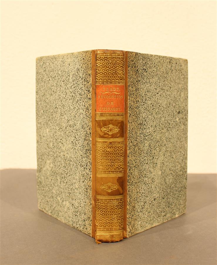 PRADT (M. de) - De la révolution actuelle de l'Espagne et de ses suites - Paris; Bechet Ainé, Rouen; Béchet fils, 1820 - Relié à la suite : DU MEME - Petit catéchisme à l'usage des Français, sur les affaires de leur pays - Paris ; Béchet ainé, Rouen ; Béchet fils, 1820 - 1 volume In-8° - Reliure de l'époque demi-veau blond orné (2nd mors partiellement fendu) - Pièce de titre papier orangé - Tranches jaunes mouchetées - Bon intérieur.