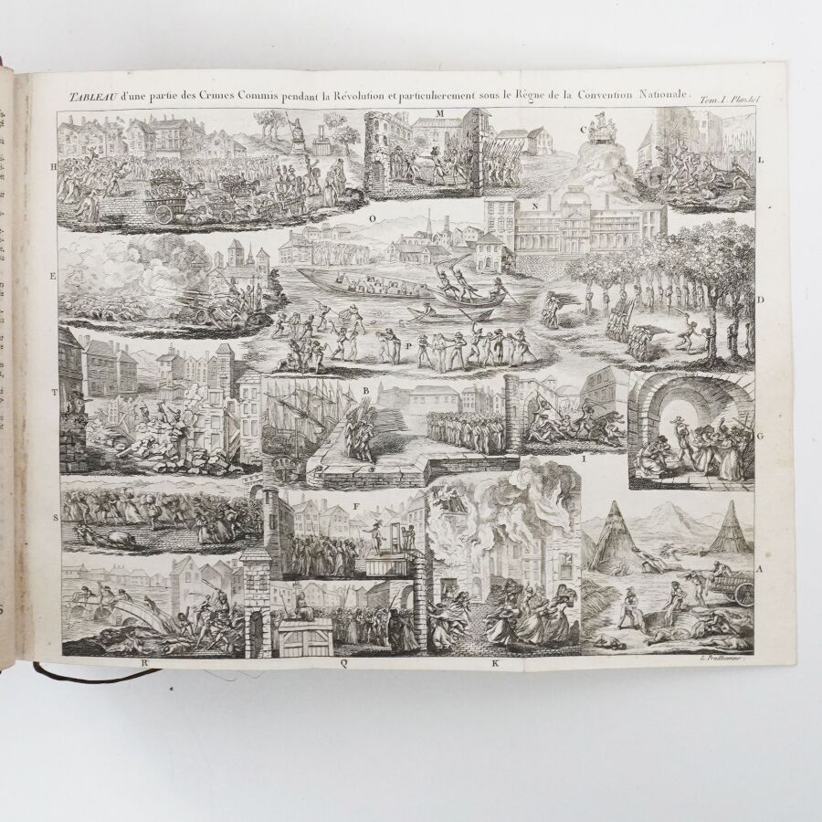 Ce Dictionnaire, complet en soi, forme les tomes I et II de l'Histoire générale des crimes commis pendant la Révolution française. Ex-libris gravé aux armes de la famille Fournier de Bellevüe.