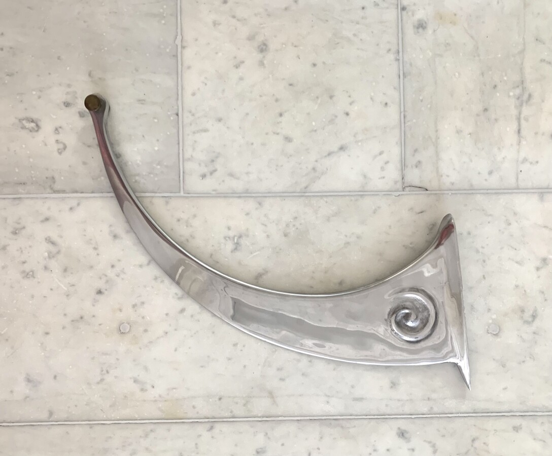 Pucci De ROSSI (1947-2013) : Suite de 6 patères organiques "Trompe" en aluminium lustré, ornées de spirales.