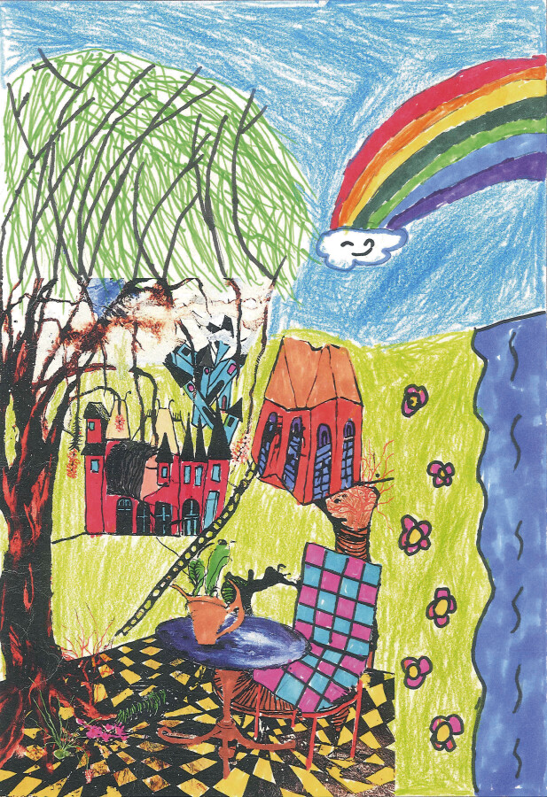Puhui DENG, "Après la pluie", dessin et aquarelle sur papier, 36.8 x 26 cm. * Cocréation avec Emmanuelle Renard.