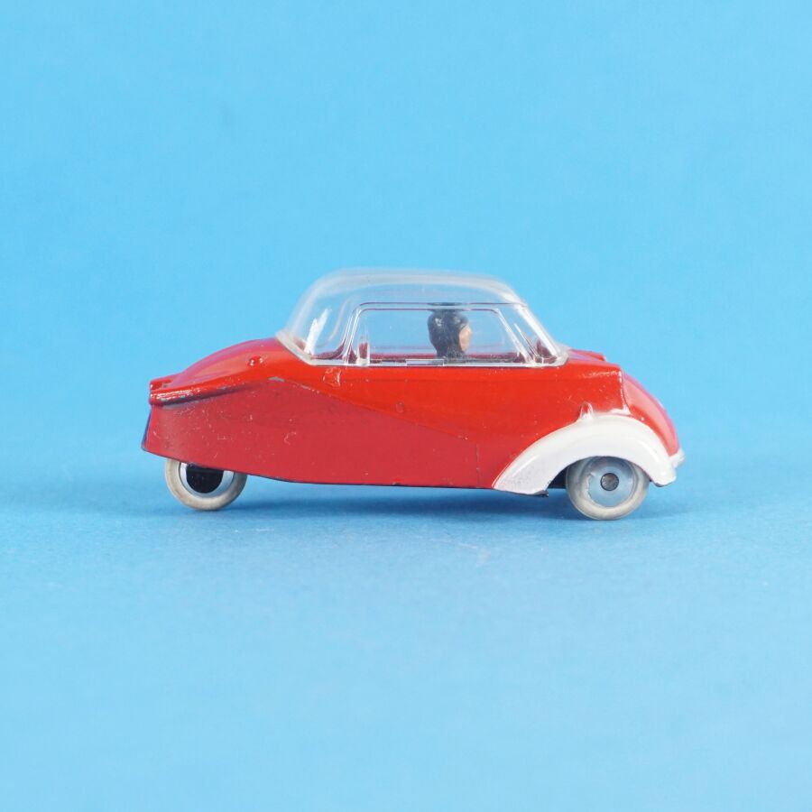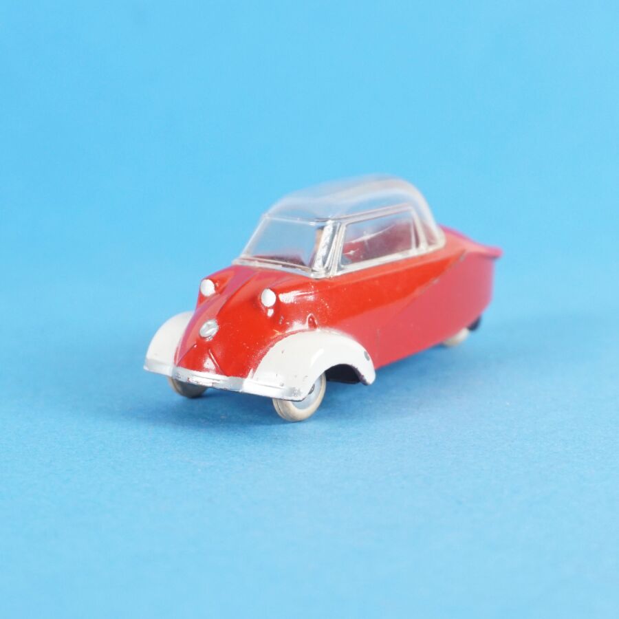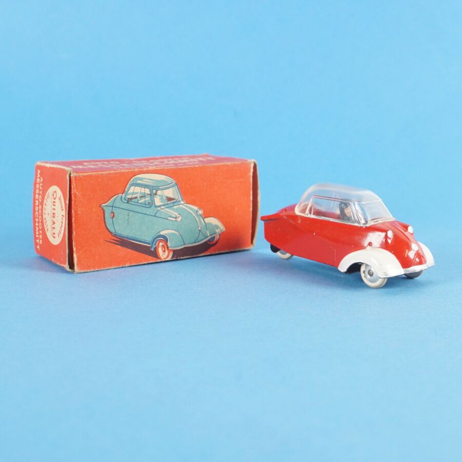 QUIRALU - MESSERSCHMITT : Motocar - Auto scooter type KR trois roues, rouge et beige, avec conducteur, présenté dans sa boîte d'origine (usures à la boîte, écaillures).