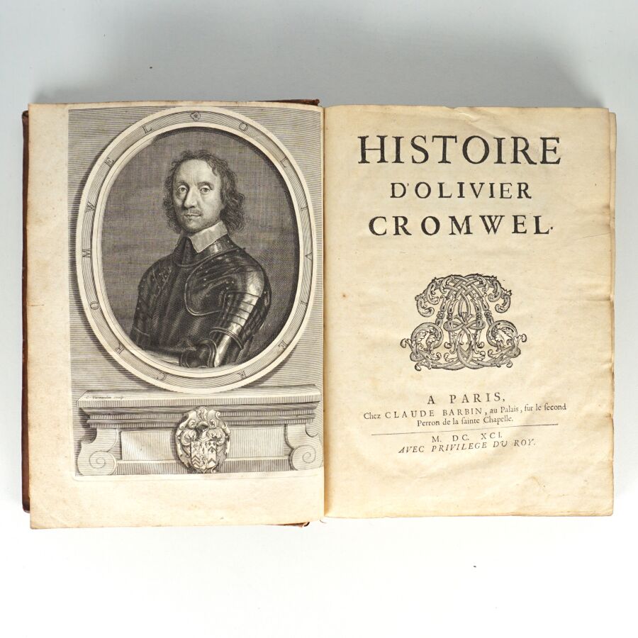 [RAGUENET (François, Abbé)]. Histoire d'Olivier Cromwel. Paris, Claude Barbin, 1691. In-4 veau havane, dos à nerfs orné, p. de titre en mar. rouge (reliure de l'époque). Reliure usagée, coiffes arrachées, frottés et épidermures.