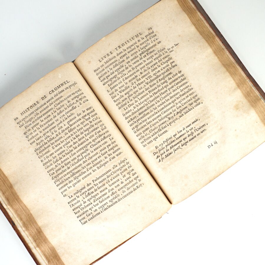 Beau portrait gravé de Cromwel en frontispice, médailles gravées in-t. Bon exemplaire hormis les défauts de la reliure.