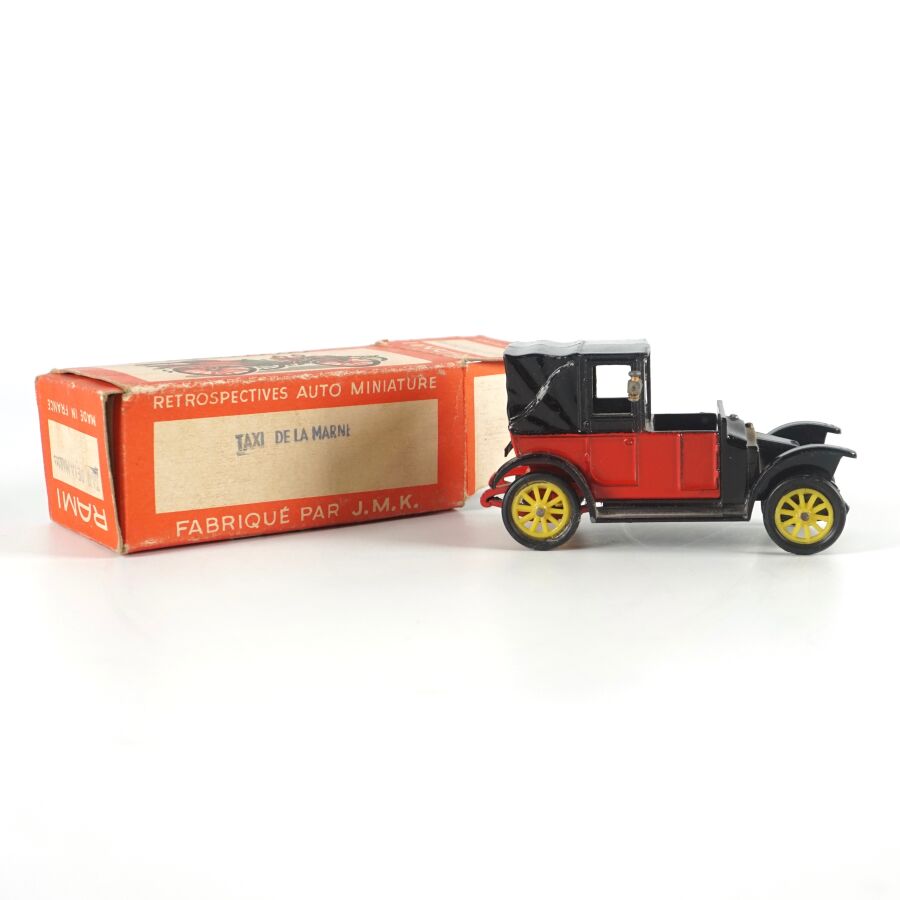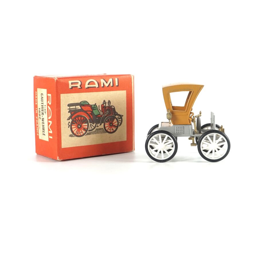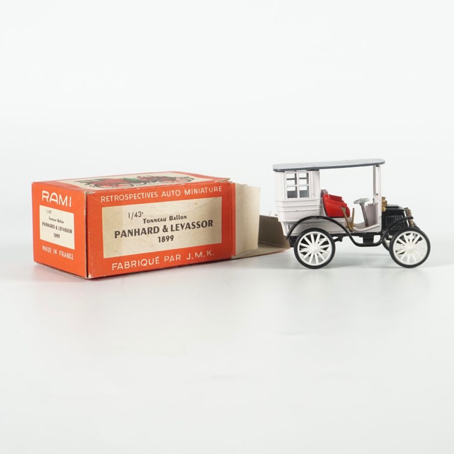 RAMI : Ensemble d'environ 25 véhicules, échelle 1/43ème, dont Ford, coupé Peugeot, Gobron Brillée, Gauthier-Wehrlé, Georges Richard, etc, dans leurs boîtes d'origine (usures aux boîtes, quelques usures et traces à la peinture).