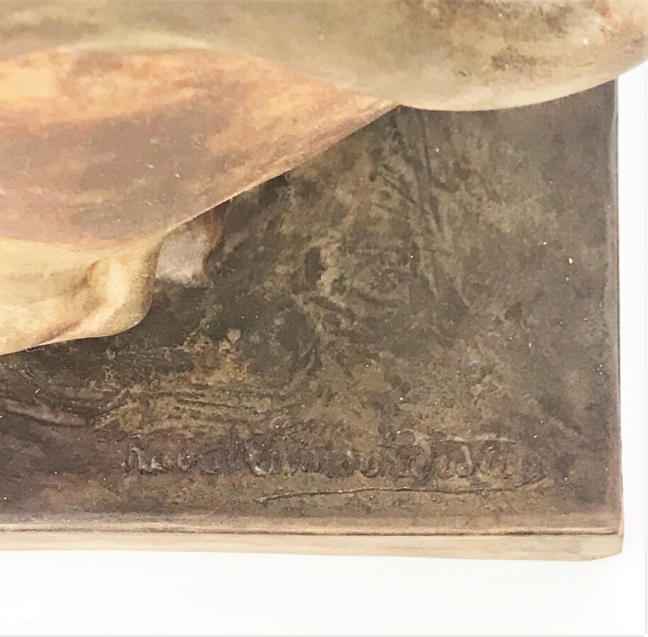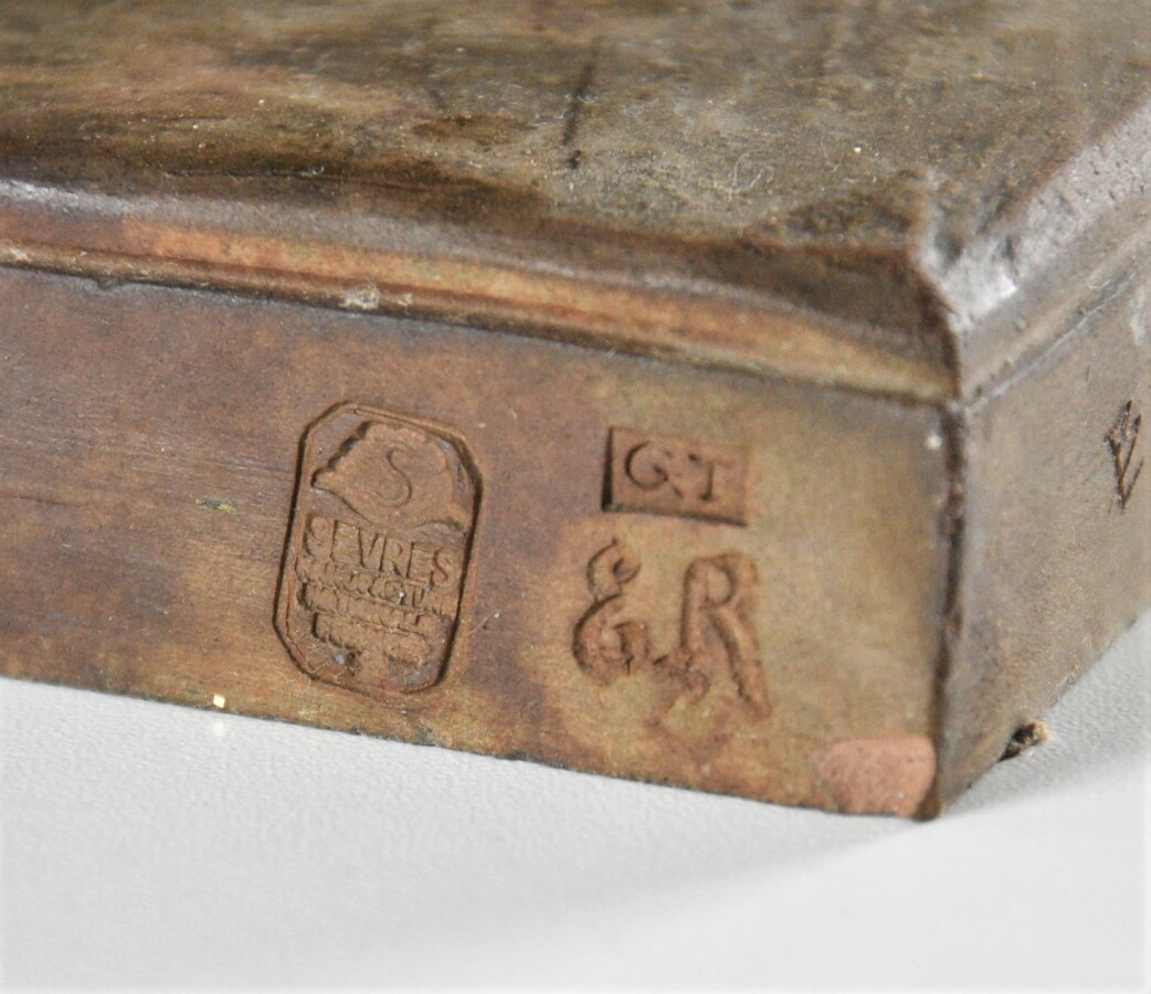 Raoul LAMOURDEDIEU (1877-1953) & SEVRES : "La Force", sujet en terre-cuite signé sur la terrasse, porte le cachet de la manufacture de Sèvres et un monogramme "E.R" sur le côté arrière du socle, H. 22 cm, L. 44 cm (infimes éclats à la base).