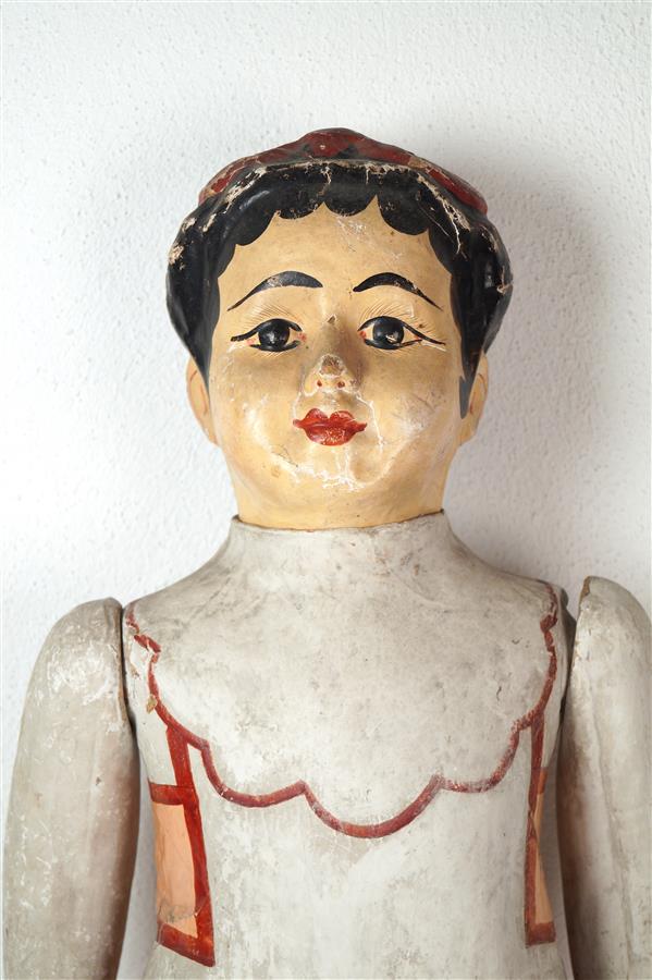 Rare fillette en carton bouilli ou pressé et peint, mains avec doigts détachés, H. 90 cm.