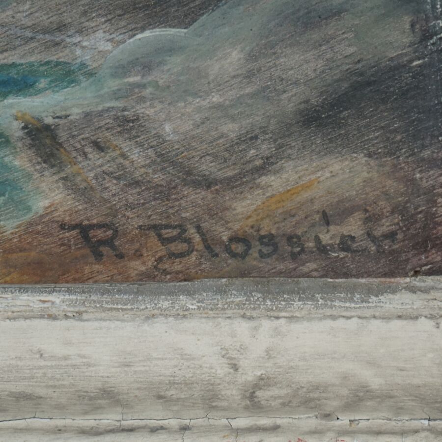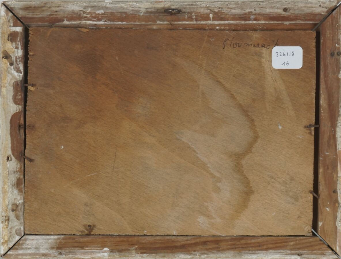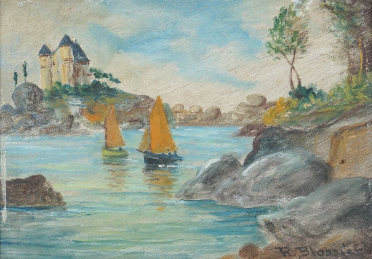 Raymond BLOSSIER (1925-2013), "Bateaux sous voile à Ploumac'h", huile sur panneau signée en bas à droite, 15 x 21 cm.